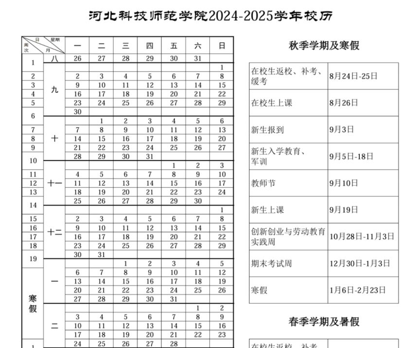 河北科技师范学院放假时间:自2025年1月6日至2025年2月23日,共计49天。