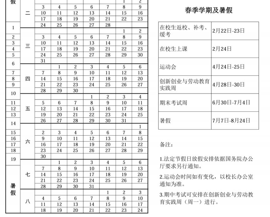 具体校历如下