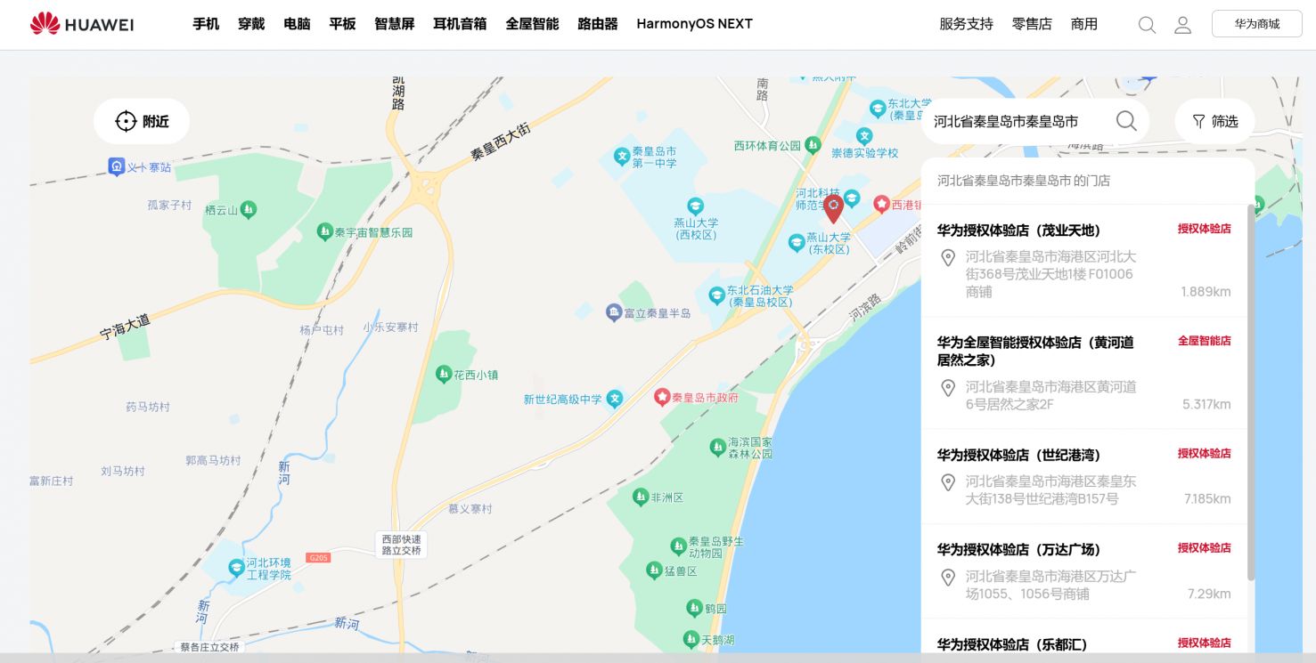 秦皇岛华为官方门店的地址查询可以通过以下几种方式一键查询: