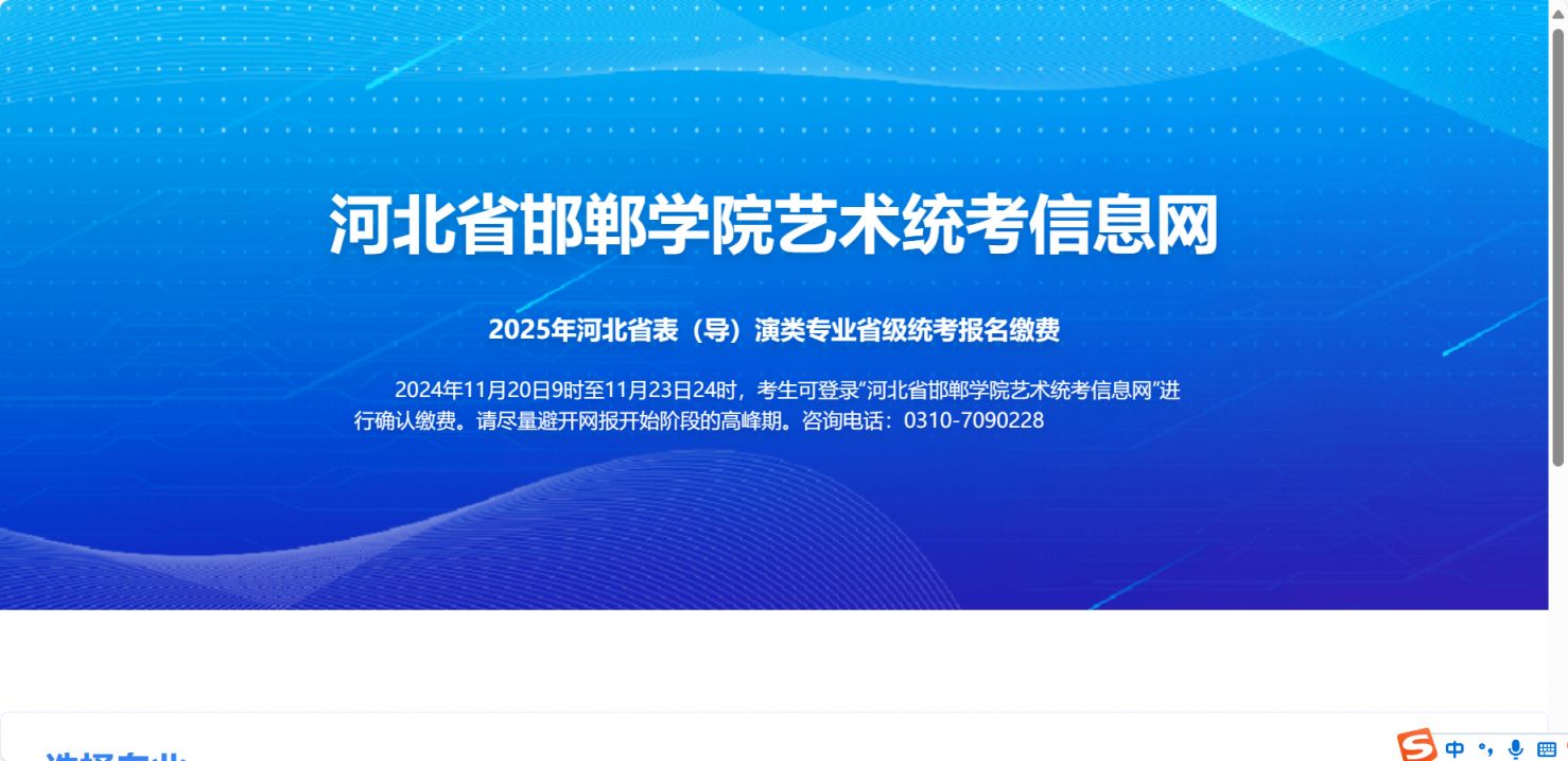 1. 打开浏览器,输入网址:https://ystk.hdc.edu.cn,进入邯郸学院艺术统考官网。