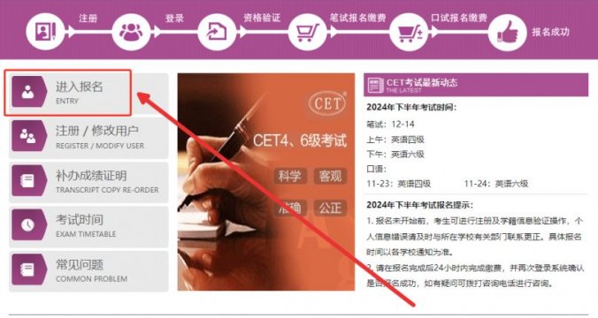 请考生按所在学校规定时间登陆CET全国网上报名系统完成资格审核、笔试报名缴费及口试报名缴费。